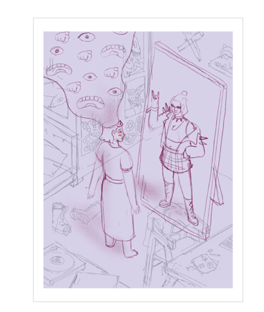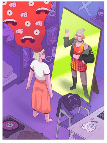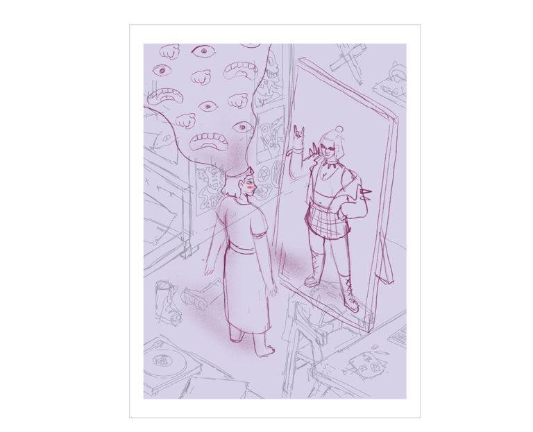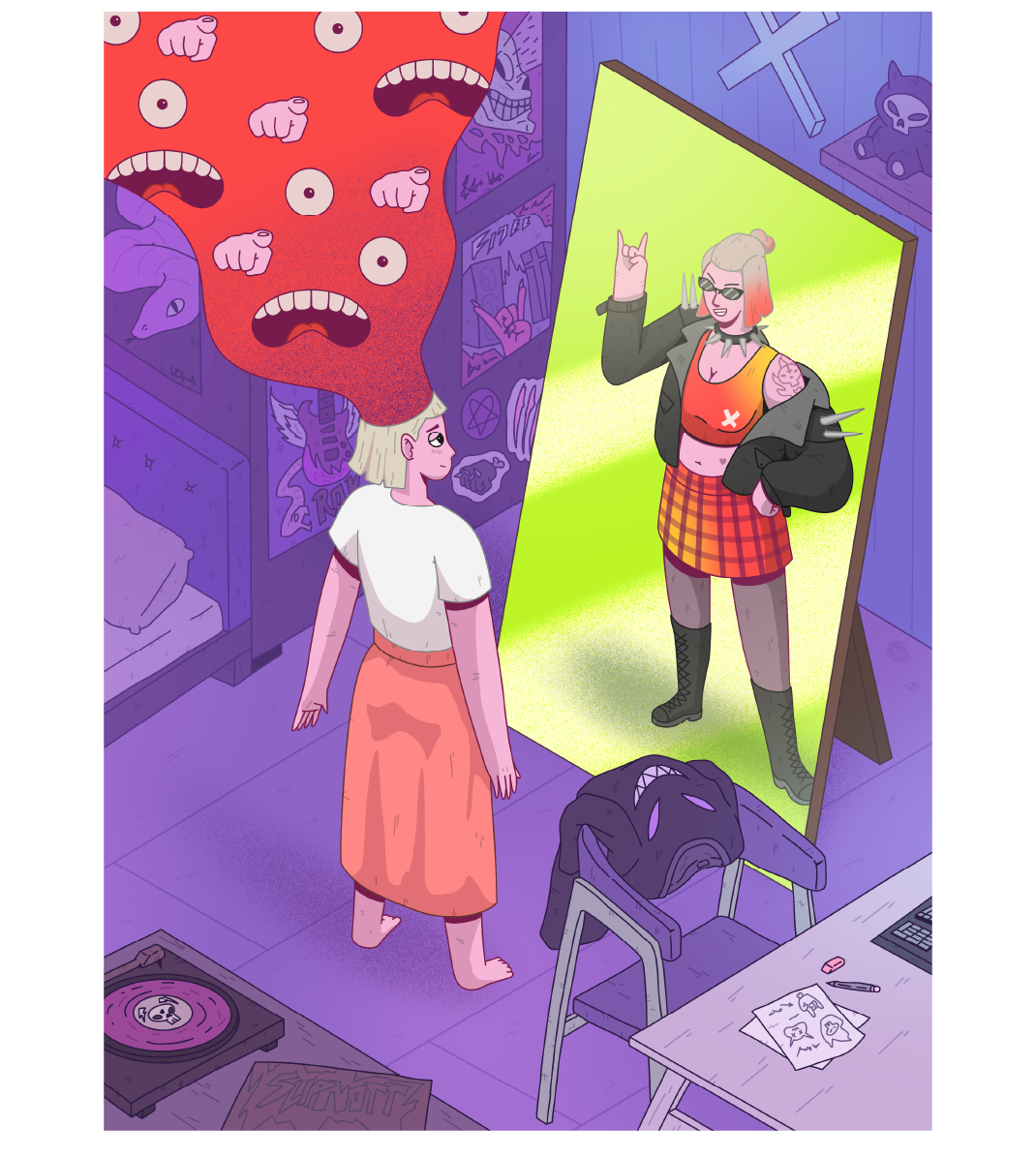 Illustration for an article about the internal vs. external experience of social anxiety,