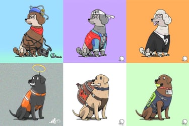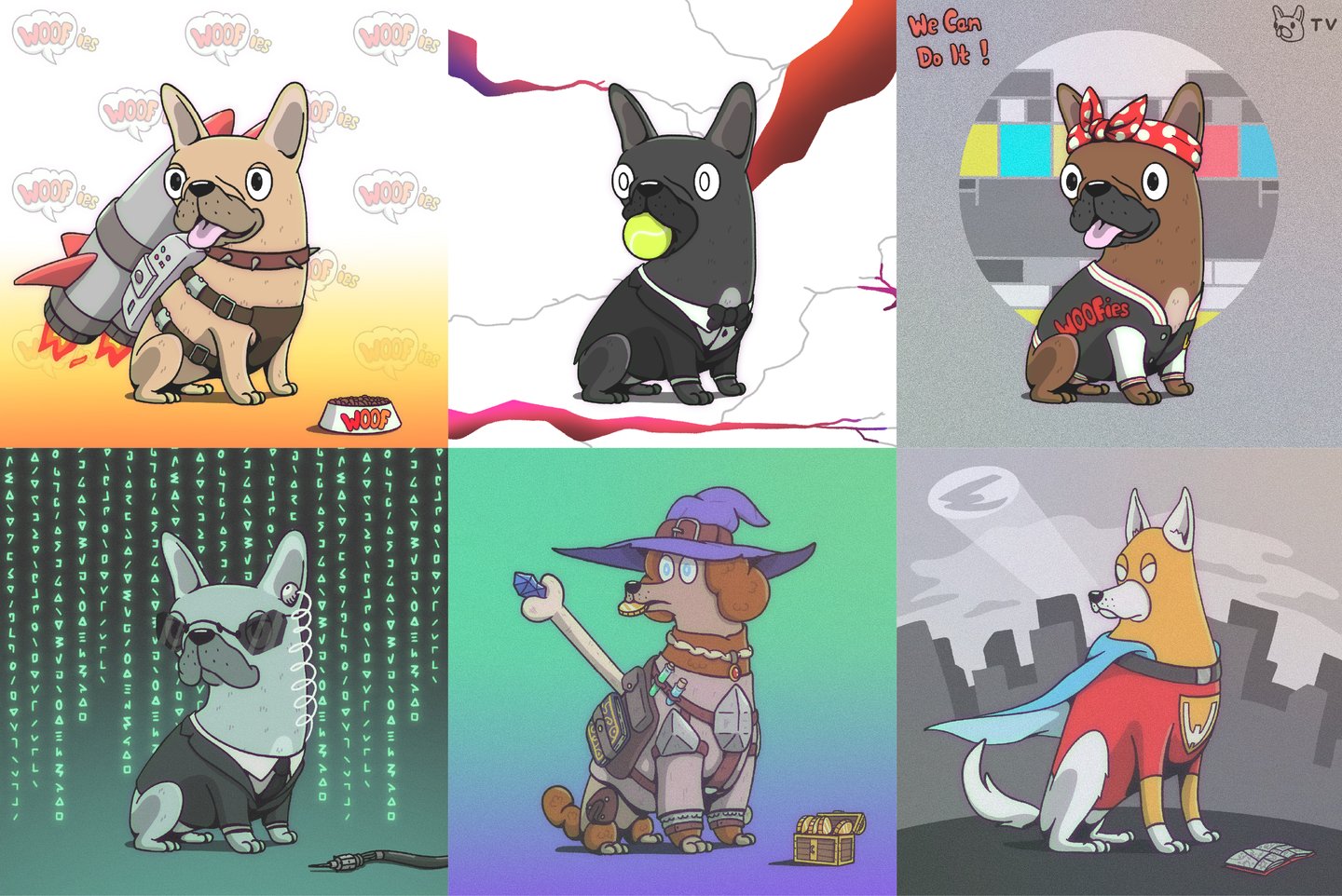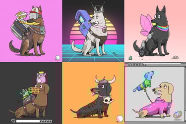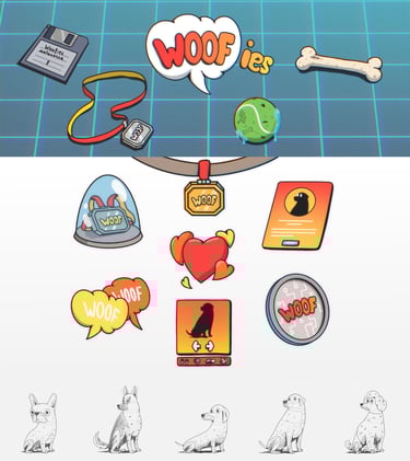 For Woofies, I developed the full visual identity and art direction for their NFT project. Based on the client’s vision, I established a unique, playful style and illustrated the entire collection — creating dozens of character assets with strong brand cohesion. In addition to the core NFT visuals, I designed complementary assets for the website and digital brand presence, ensuring consistency across all touchpoints.